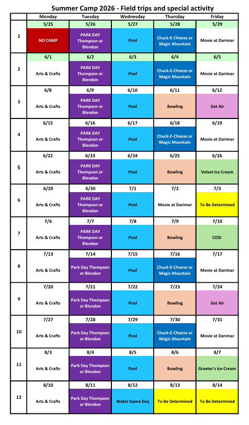 Darimar Martial Arts offers eleven fun-filled weeks of Summer Day Camp. With a focus on martial arts, the program is designed to instill important values and skills, such as teamwork, confidence, focus, discipline, and fitness for children from the ages of 4 ½ to 13 years. The experience also includes traditional day camp activities such as arts & crafts, water day fun; including but not exclusive to water balloons/water guns/and more, archery, ice cream trips, dance parties, and weekly field trips! Whether the camper is signed up for one week or the full eleven weeks, memorable experiences are sure to be made! Each week is geared toward a special theme teaching our students an important life lesson; such as leading without being bossy, treating others with kindness, the value of teamwork, and much more! Darimar’s energetic camp staff and martial arts masters are highly qualified, well trained, and excited to work with our campers. In addition, the summer camp program strives to maintain a low child to counselor ratio to provide the best experience for each camper.